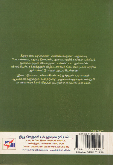 இக்கட்டுரைகள், விலங்கியல், சுற்றுச்சூழல், பறவைகள் ஆய்வாளர்களுக்கும், வனத்துறை அலுவலர்களுக்கும், கல்லூரி மாணவர்களுக்கும் மிகுந்த பயனுள்ளவையாக அமையும்.