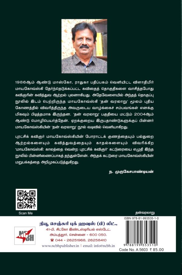 புரட்சிக் கவிஞர் மாயகோவ்ஸ்கியின் போராட்டக் குணத்தையும் பல்துறை ஆற்றல்களையும் கவித்துவத்தையும் காதல்களையும் விவரிக்கிற ‘மாயகோவ்ஸ்கி: காலத்தை வென்ற புரட்சிக் கவிஞர்’ கட்டுரையை எழுதி இந்த நூலில் பின்னிணைப்பாகத் தந்துள்ளேன். அந்தக் கட்டுரை மாயகோவ்ஸ்கியின் மறுபக்கத்தை அறிமுகப்படுத்துகிறது.