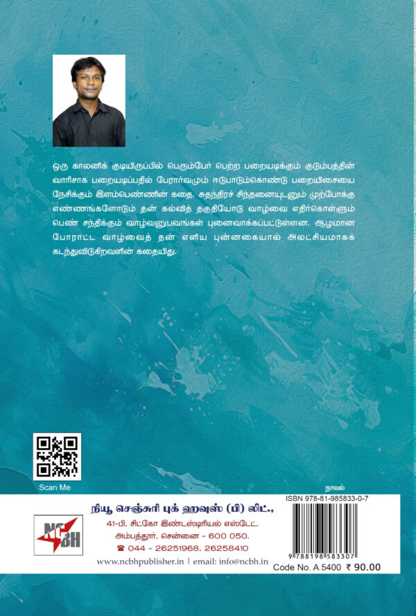 ஒரு காலனிக் குடியிருப்பில் பெரும்பேர் பெற்ற பறையடிக்கும் குடும்பத்தின் வாரிசாக பறையடிப்பதில் பேரார்வமும் ஈடுபாடும்கொண்டு பறையிசையை நேசிக்கும் இளம்பெண்ணின் கதை. சுதந்திரச் சிந்தனையுடனும் முற்போக்கு எண்ணங்களோடும் தன் கல்வித் தகுதியோடு வாழ்வை எதிர்கொள்ளும் பெண் சந்திக்கும் வாழ்வனுபவங்கள் புனைவாக்கப்பட்டுள்ளன. ஆழமான போராட்ட வாழ்வைத் தன் எளிய புன்னகையால் அலட்சியமாகக் கடந்துவிடுகிறவளின் கதையிது.