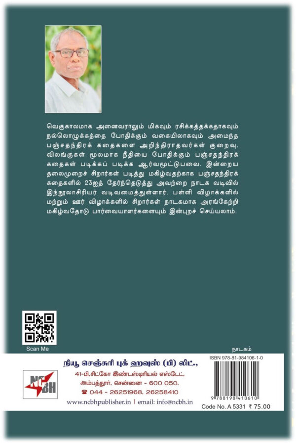 வெகுகாலமாக அனைவராலும் மிகவும் ரசிக்கத்தக்கதாகவும் நல்லொழுக்கத்தை போதிக்கும் வகையிலாகவும் அமைந்த பஞ்சதந்திரக் கதைகளை அறிந்திராதவர்கள் குறைவு. விலங்குகள் மூலமாக நீதியை போதிக்கும் பஞ்சதந்திரக் கதைகள் படிக்கப் படிக்க ஆர்வமூட்டுபவை. இன்றைய தலைமுறைச் சிறார்கள் படித்து மகிழ்வதற்காக பஞ்சதந்திரக் கதைகளில் 23ஐத் தேர்ந்தெடுத்து அவற்றை நாடக வடிவில் இந்நூலாசிரியர் வடிவமைத்துள்ளார். பள்ளி விழாக்களில் மற்றும் ஊர் விழாக்களில் சிறார்கள் நாடகமாக அரங்கேற்றி மகிழ்வதோடு பார்வையாளர்களையும் இன்புறச் செய்யலாம்.