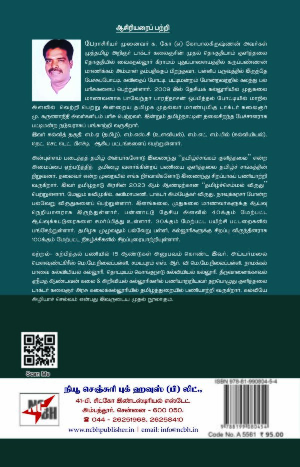 | Book Name : Kalviyea Azhiya Selvam Regional Name : கல்வியே அழியாச் செல்வம் Author : தமிழ்ச்செம்மல் முனைவர் க.கோபாலகிருஷ்ணன் |