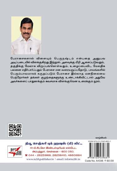 பேராசைகளால் விளையும் பெருநஷ்டம் என்பதை அனுபவ அடிப்படையில் விளக்குகிறது இந்நூல். அளவுக்கு மீறி ஆசைப்படுவதும், தகுதிக்கு மேலாக விருப்பங்கொள்வதும், உழைப்பைவிட மேலதிக பலனை எதிர்பார்ப்பதும் பேராசை என வரையறுப்பதோடு, பாவங்களில் பெரும்பாவமாகக் கருதப்படும் பேராசை இல்லாத மனநிலையை பெற்றோர்கள் தங்கள் குழந்தைகளுக்கு உண்டாக்கிவிட்டால் அதுவே அவர்களைப் பாதுகாக்கும் கவசமாக விளங்குமென உரைக்கும் நூல்.
