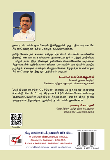 ‘அறிவியலாளர்களே பெரியோர்’ என்கிற அழுத்தமான எண்ணம் கொண்டு செயல்பட்டவர் சிந்தனைச் சிற்பி சிங்காரவேலர் என்பதை ‘ம.சிங்காரவேலரின் அறிவியல் சிந்தனைகள்’ என்கிற இந்த நூலில் அழுத்தமாக நிறுவுகிறார் ஆசிரியர் த.ஸ்டாலின் குணசேகரன்.